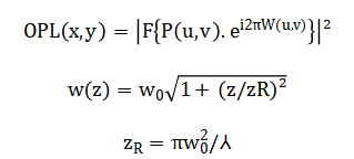 Diffraction analysis uses the Fourier transform from which the MTF is derived. Gaussian beam propagation follows with Rayleigh range.