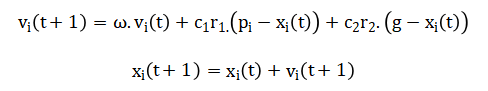 This core model is enhanced with a linearly decreasing inertia weight (w) for adaptive search control, velocity clamping to ensure stability, and boundary handling to constrain the search domain.