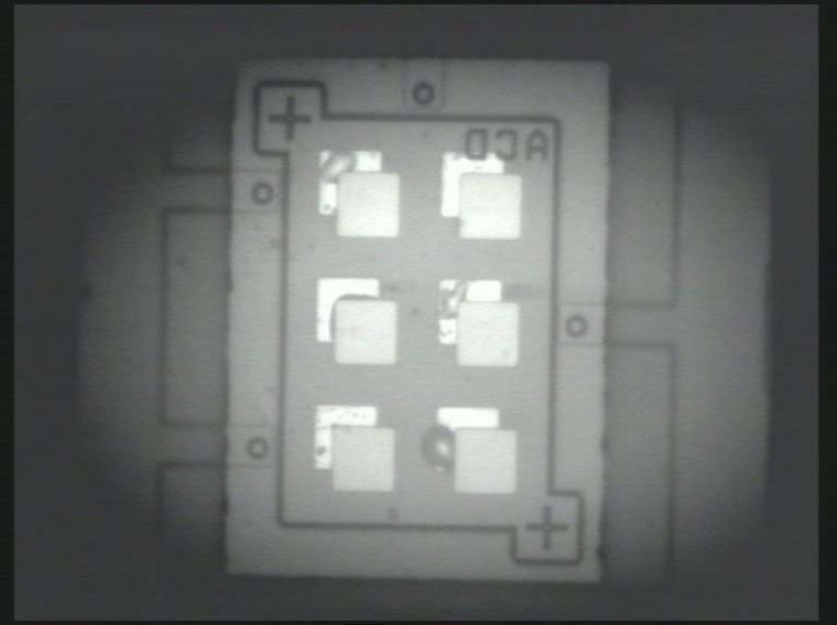 | Figure 7: Infrared microscope image of the assembly after the soldering process was carried out. | Figure 8: Detailed picture of Figure 7 | |