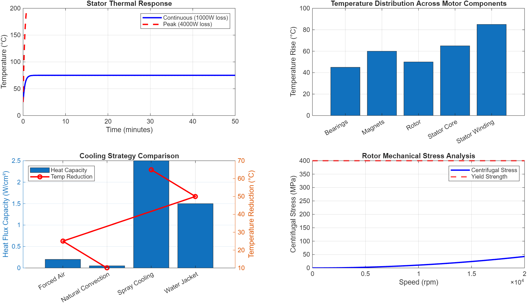 - Mechanical Integrity: Rotor mechanical stress analysis defines maximum safe operating speed at 18,000 rpm, limited by yield strength of 400 MPa.