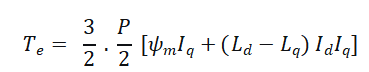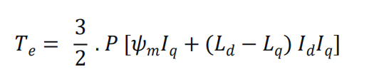 Where, P is the number of poles, ψmis the permanent magnet flux linkage, Id and Iq are d-axis and q-axis currents, and Ld and Lq are the corresponding inductances [13].