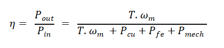 where Pcu is copper loss, Pfe is iron loss, and Pmech is mechanical loss [22].