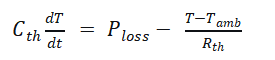 Continuous operation at 1000W loss results in steady-state temperature of 75°C after approximately 5 minutes. Peak operation at 4000W loss reaches 225°C, exceeding typical insulation limits (Class H: 180°C). This emphasizes the importance of thermal management and duty cycle limitations.