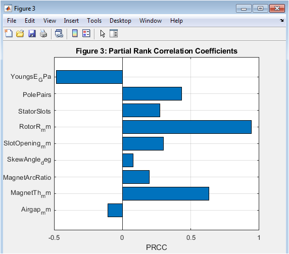 Figure 5: Partial Rank Correlation Coefficients (PRCC) for PMSM Design Parameters.