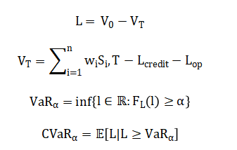 Portfolio loss is defined as from which Value-at-Risk is computed as and Expected Shortfall as: