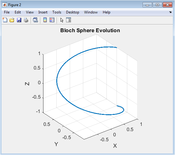 This figure shows the evolution of the Bloch sphere, representing the qubit’s state in a three-dimensional space. The x, y, and z axes represent the Pauli matrices, and the sphere’s surface represents the possible qubit states. The figure demonstrates the qubit’s evolution under the influence of a rotation gate. The trajectory on the Bloch sphere shows the qubit’s state changing over time. The figure provides insight into the qubit’s dynamics and behavior. The Bloch sphere is a fundamental tool in quantum computing, allowing researchers to visualize and analyze qubit states. The figure is a crucial component of the study, demonstrating the principles of quantum computing. The results are relevant to various fields, including quantum computing and quantum information processing. The figure is used to analyze the qubit’s behavior and properties.