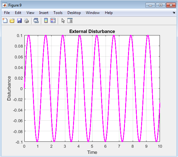 Disturbance | d(t)=0.1sin(5t) | Bounded external disturbance |