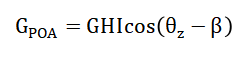 The plane-of-array irradiance is calculated using where (beta ) is the tilt angle [33].