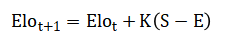 Where (S) is the actual match outcome (win, loss, draw) and (E) is the expected probability of winning. Bayesian inference is applied to refine latent team strengths, combining prior knowledge with observed Elo ratings: