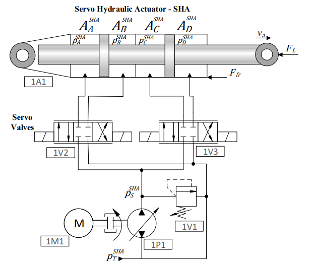 The control of flight surfaces is done through an actuation system, which can be comprised of different topologies. The most applied are: Electro-Mechanical Actuators – EMA, Servo Electro-Hydraulic Actuators – SHA, and Electro-Hydrostatic Actuators – EHA.