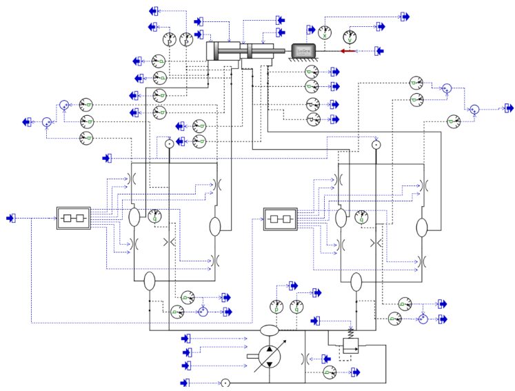 - Figure 11 – Dynamic model diagram of the hydraulic circuit.