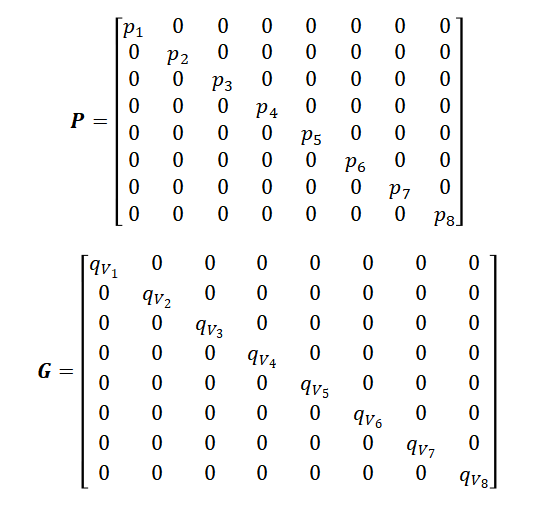 normalizes the conductance and capacity matrices and counts the number of connections to each node, and is used to form the nodal capacity matrix, indicated by Equation 04: