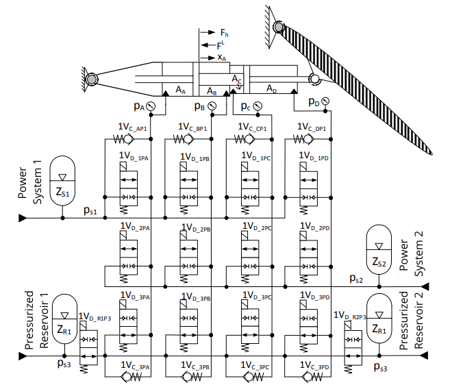 Other studies were made to better evaluate the capabilities of the DHA. Ward (2017) applied the DHA to all ailerons of the model “F16systemManeuver”, which resulted in a 30% reduction on the consumption of hydraulic power. Dell’Amico et al. (2018) tested the performance of the DHA on the internal elevons in the model “ADMIRE”, reducing the hydraulic power used by 40%. Cruz (2018) compared the DHA to a SHA model with real internal leakage data of a servo valve, concluding that the DHA presented up to 30 times less dissipated energy.