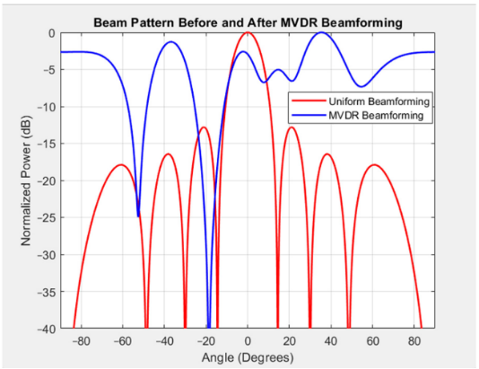 The DAS technique is a simple and widely used beamforming method, but it has limitations in terms of sidelobe suppression and resolution. The MVDR technique is a more advanced beamforming method that uses an adaptive approach to minimize interference and maximize the signal-to-noise ratio. Capon proposed a high-resolution frequency-wavenumber spectrum analysis technique [9]. The QP-based optimization technique is a more recent approach that uses quadratic programming to minimize integrated sidelobe power subject to a unit response constraint at the look direction.
