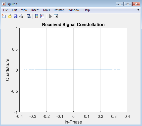 Figure 8 shows the received signal constellation after coherent demodulation. The ideal BPSK constellation consists of two points along the in-phase axis. In the plot, scattering of points around the ideal positions illustrates the combined effects of multipath, Doppler shifts, and ambient noise. The dispersion indicates the probability of symbol errors and helps visually interpret the BER performance. The figure is useful for understanding phase and amplitude distortions in the received signal. Dense clustering near the ideal points corresponds to high SNR, while wider spread indicates degradation. It provides a qualitative tool for evaluating receiver performance and modulation robustness. This visualization also aids in designing phase correction and equalization algorithms. Overall, the constellation diagram serves as an intuitive representation of signal integrity under realistic underwater channel conditions.