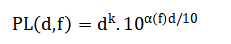 The underwater acoustic channel is modeled using a combination of distance-dependent path loss (PL(d)) and Thorp absorption (alpha(f)), expressed as: