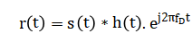 The Doppler effect is incorporated as a frequency shift in the received signal where (f_D) is the Doppler frequency.