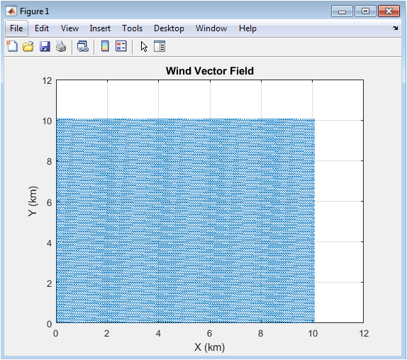 This figure 2 visualizes the wind field across the urban grid, showing both direction and magnitude of airflow. The wind is a critical factor in pollutant transport, as it determines how pollutants from multiple sources disperse throughout the city. Arrows indicate the velocity components along the X and Y axes, representing realistic atmospheric advection. Areas with stronger wind show longer arrows, indicating faster transport of pollutants. Wind direction influences which neighborhoods are most affected by emissions. By visualizing the wind field, the simulation can identify potential pollution hotspots downwind of emission sources. The uniformity or turbulence of wind patterns affects the lateral and vertical spreading of pollutants. This figure provides insight into how meteorological conditions interact with emission sources. It also allows researchers to adjust wind parameters in scenario testing. Overall, this figure forms the basis for interpreting pollutant dispersion patterns in subsequent analyses.