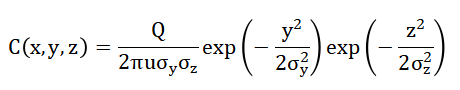 - σy,σz: Lateral and vertical dispersion coefficients