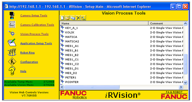 Figure 5: List of all Vision Process Tools