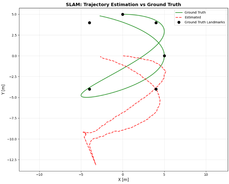 Throughout this article, we will guide you through a complete, working EKF-SLAM implementation that you can run, study, and modify for your own projects. You will learn how to represent robot state and map features in a unified vector, propagate uncertainty through nonlinear motion models, and perform consistent updates when observing landmarks. We will explain the mathematical foundations behind each component, showing how Jacobian matrices linearize nonlinear functions and how covariance matrices capture correlations between state variables [23]. The six output visualizations will help you develop intuition for SLAM behavior, allowing you to see how uncertainty evolves and how map accuracy improves with observations. By the end, you will have a deep understanding of SLAM principles and a working implementation that serves as a foundation for exploring advanced topics like graph-based SLAM, visual odometry, and deep learning for robotics.