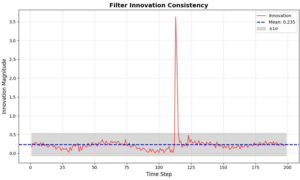 | Filter Performance | Mean Innovation Magnitude | 0.23 | meters | Average innovation value across all updates |