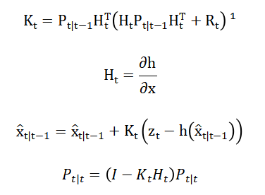 - Kt: Kalman gain (sensor vs prediction weighting)