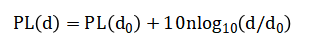 Where (P_t) is transmit power, (G_t) and (G_r) are antenna gains, (PL(d)) is the distance-dependent path loss, and (X_sigma) represents log-normal shadow fading. The log-distance path loss is given by: