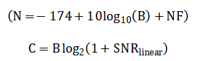 with (n) as the path loss exponent. The Signal-to-Noise Ratio is calculated as:
