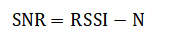 with (n) as the path loss exponent. The Signal-to-Noise Ratio is calculated as: