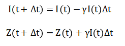 The delayed conversion from infected to zombie follows, where represents the inverse conversion time.