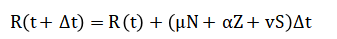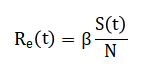 The effective reproduction number is approximated dynamically as linking transmission intensity to the remaining susceptible population.